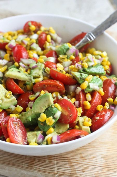 Кукурузу смело можно добавлять в разнообразные салаты. Она идеально сочетается с другими овощами. Кукуруза может стать как удачным дополнительным ингредиентом, так и самой настоящей основой блюда. Пример второго варианта — салат с кукурузой и авокадо.